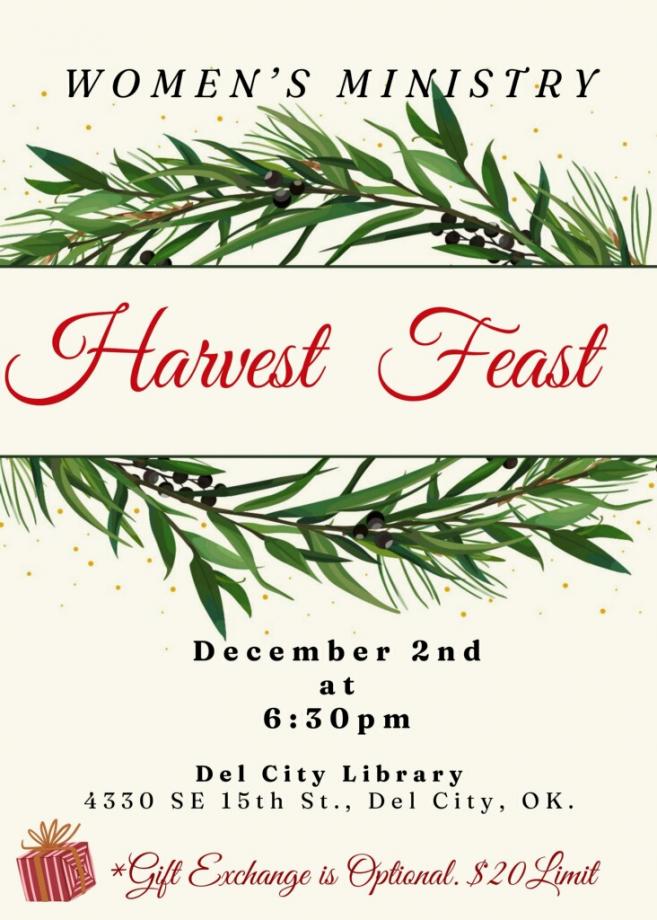 Fairview's Women's Ministry will have their 2025 Harvest Feast on Tuesday, December 2nd at 6:30 PM. See graphic below. Let's Celebrate!! All Women are Welcome!!
